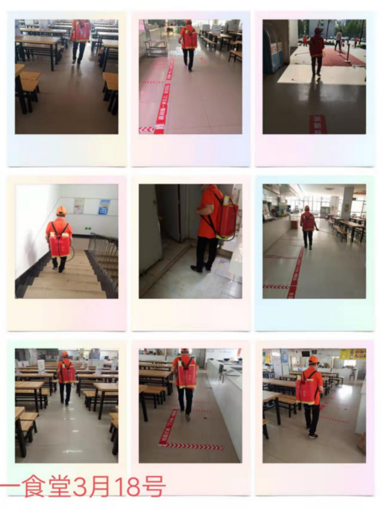 为切实做好疫情防控工作,后勤处按照疫情防控的相关决策部署,精心组织,周密安排,守初心、勇担当,英勇奋战在疫情防控一线,高效、有序地完成了每日校园内的消杀工作,做到全覆盖,不留死角。消杀区域含盖教学楼、办公楼、宿舍楼、图书馆、运动场、户外垃圾桶、公共卫生间、校园道路及公共区域、生活区周边、超市周边、食堂内外,以及校隔离点。