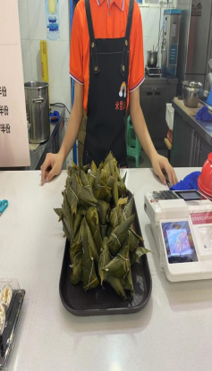 学校在一食堂、二食堂、三食堂分别设专门位置分发粽子,每位来就餐的师生都可以免费领取,现场秩序井然,学生们笑容满面。