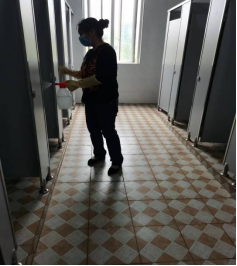 消毒过程中,消杀人员全程佩戴口罩、做好防护,使用酒精、84消毒液、含氟泡腾片溶液对教室、校园操场、卫生间、会议室、走廊、食堂等区域进行全面消杀。消杀人员认真仔细,实现了全覆盖,确保消毒彻底,不留死角。